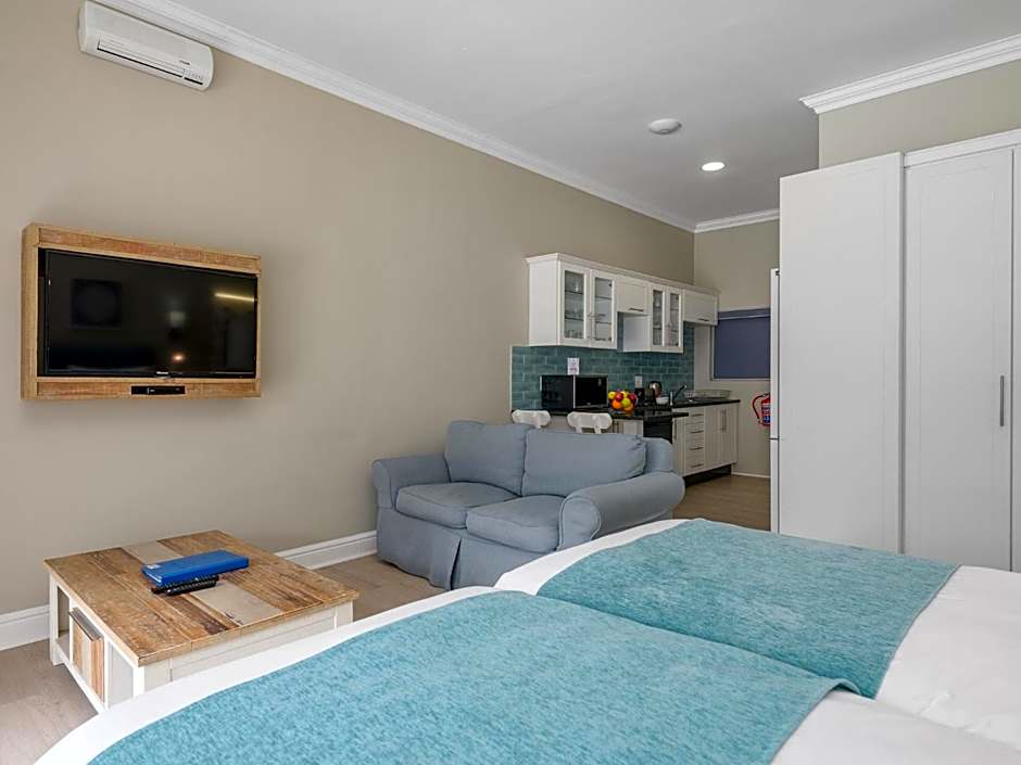 This open plan studio offers twin beds, a fully equipped kitchen and a TV with selected satellite channels. The bathroom is fitted with a shower, toilet and basin.